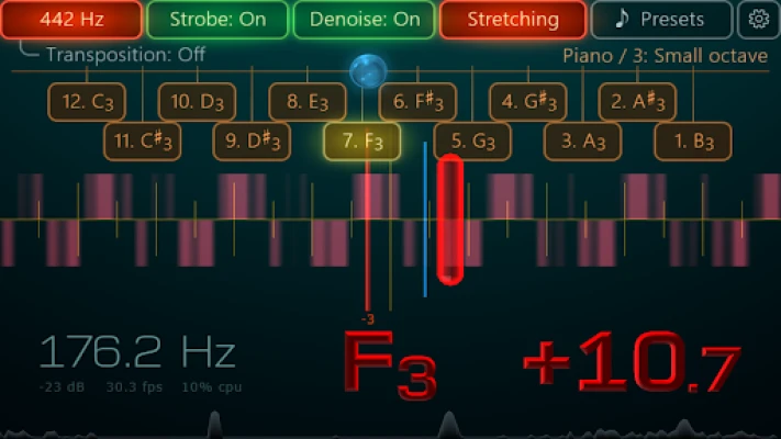 Please note, this app is not free. You can try every feature for free during the trial period. After the trial ends, the app will remind you of this every thirty seconds. There will be no other restrictions, and all features will remain available. If you don't plan to buy a license and you have nerves of steel, you can continue using this tuner completely free. Or you can make a one-time purchase of a lifetime license and enjoy this excellent tool on all your compatible Android devices anytime, anywhere.