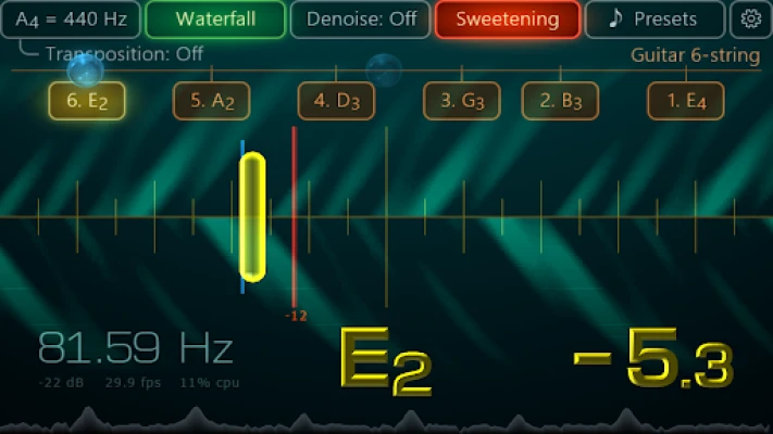 Most user reviews suggest that Airyware Tuner is the best guitar tuner. However, this app is not limited to guitars. It can assist in tuning more than 400 orchestral and other instruments, including the piano, violin, flute, bagpipe, trumpet, clarinet, saxophone, cello, mandolin, veena, church organ, harmonica, recorder, ukulele, bass, banjo, and more. It performs equally well on stage, at home, or on the street. Bass guitarists and contrabassists particularly love it, and piano tuners and luthiers use it professionally. With its instantaneous response, scientific precision, waveform inspector, denoiser, and true strobe view, this tuner is the choice of musicians who demand the very best sound.