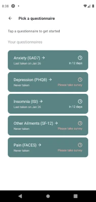 Every 2 weeks, answer a few questions about how you are doing. These clinically validated surveys are the gold standard used by clinicians to gather powerful information about your mental health and wellbeing.
