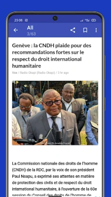 Congo Actualités est votre application complète pour suivre toutes les actualités de la République Démocratique du Congo. Accédez aux dernières informations et aux nouvelles de dernière minute sur la politique, l’économie, le sport, la culture et la société. Que vous soyez à Kinshasa, dans une autre province ou à l’étranger, restez connecté à tout ce qui se passe en RDC.