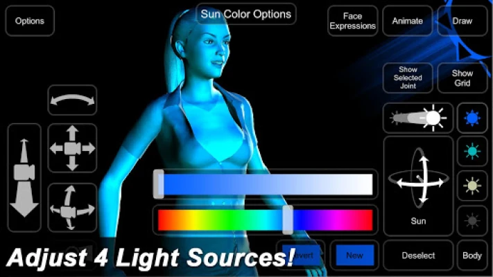 Adjust 4 lights including angle, color, and brightness.