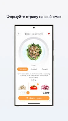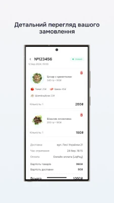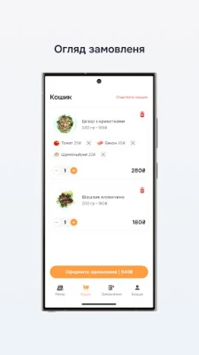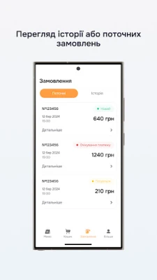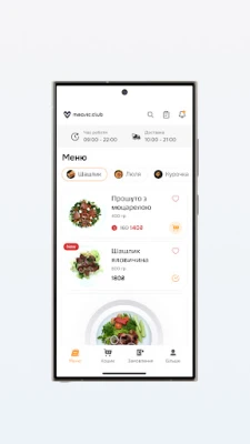 -Страв з мангалу -Страв з печі -Фритюрні страви -Свіжі салати -Напої та ін. -Легко та швидко замовити оплатити і отримати замовлення .