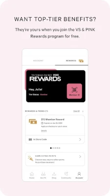 Join VS & PINK Rewards to earn points with every purchase, which turn into treats like Free Shipping and $$ Off your next order. Plus, you’ll have access to our exclusive Community—a space to create, connect, and get inspired.
