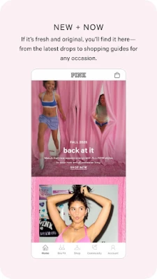 Welcome to the PINK APP: your destination for discovering new trends, exclusive offers, *tons* of cute styles, and more. We literally have it all, from comfy stay-in basics to eye-catching go-out looks. With Bras, Panties, Apparel, Activewear, and Swimwear (not to mention Beauty + Accessories) in sizes ranging from XS-XXL, there’s a lot of something for everyone. Interested? Here’s some other cool stuff we’ve got going on: